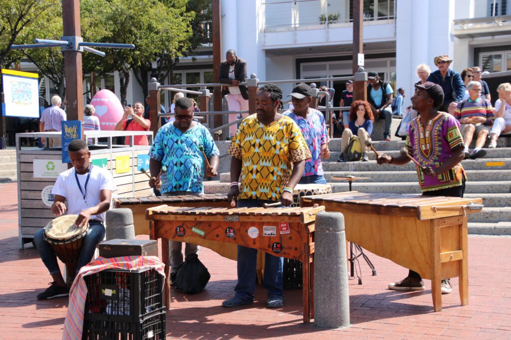 Es sind nur 40 Minuten Autofahrt zu bewältigen, um an unsere Unterkunft im Stadtteil Greenpoint zu gelangen. Da der Check-in ab 14:00 Uhr vorgesehen ist und wir aber schon vor 10 Uhr hier ankommen, parken wir unseren Wagen in einem Parkhaus in der Nähe der V&A Waterfront. Kapstadts Waterfront ist ein restauriertes Hafen- und Werftenviertel um die beiden historischen, nach Königin Viktoria und ihrem Sohn Prince Alfred benannten Hafenbecken. Straßenmusiker, Segeljachten, Restaurants und Cafés, eine riesige Einkaufsmall: dies und viel mehr wurde in den aufwändig restaurierten Gebäuden untergebracht. Es herrscht ein reges Treiben, selbst jetzt, am noch recht frühen Vormittag. Wir lassen uns ein wenig treiben und schauen in den einen oder anderen Laden, trinken einen Smoothie im V&A Foodmarket und lauschen einer Band von Straßenmusikern, die auf Xylophonen spielet. Haben wir nicht genau diese Gruppe schon vor 4 Jahren hier gehört?