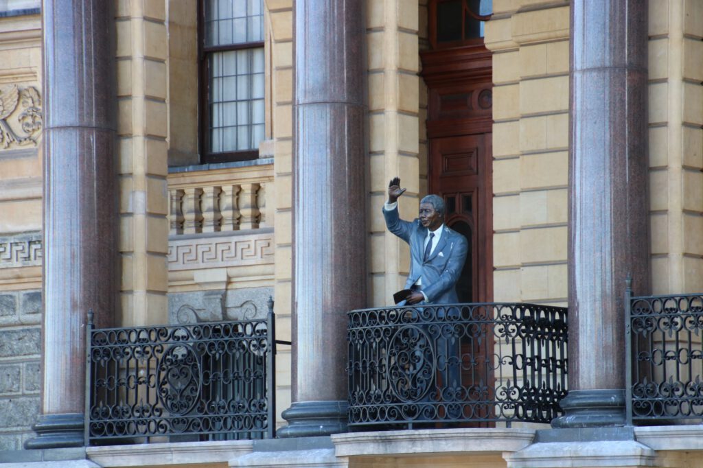 Als wir an der Cape Town City Hall (ehemaliges Rathaus) vorbeikommen, sind wir überrascht, Nelson Mandela anzutreffen. Eine naturgetreue, lebensgroße Mandela-Statue steht hier auf einem Balkon mit Blick auf die Grand Parade. Genau an der Stelle hielt er nämlich eine Rede, als er am 11. Februar 1990 aus dem Gefängnis entlassen wurde, in der er den Beginn einer neuen Ära in Südafrika ankündigte.
