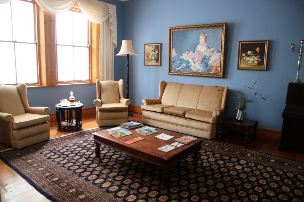 Gegen 13 Uhr beziehen wir im Braeside B&B unser schönes Zimmer. Das B&B verteilt sich auf zwei viktorianische Häuser, eines aus dem Jahr 1870, das andere aus 1903. Unser gemütliches Zimmer ist hell und freundlich, hat hohe Decken, einen knarzenden Fußboden aus Douglasienholz. Wir fühlen uns auf Anhieb wohl und sind froh, dass wir diesmal für den Abschluss unserer Tour einen Volltreffer gelandet haben. 2015 war die letzte Unterkunft (damals in Stellenbosch) ein Reinfall und auch bei unserer Portugalrundreise stand am Ende eine Unterkunft, die uns gar nicht behagte. Hier ist das – Gott-sei-Dank – ganz anders.