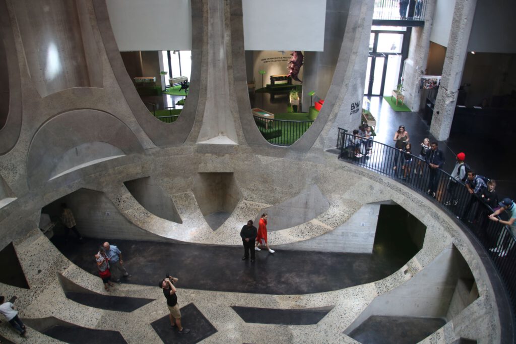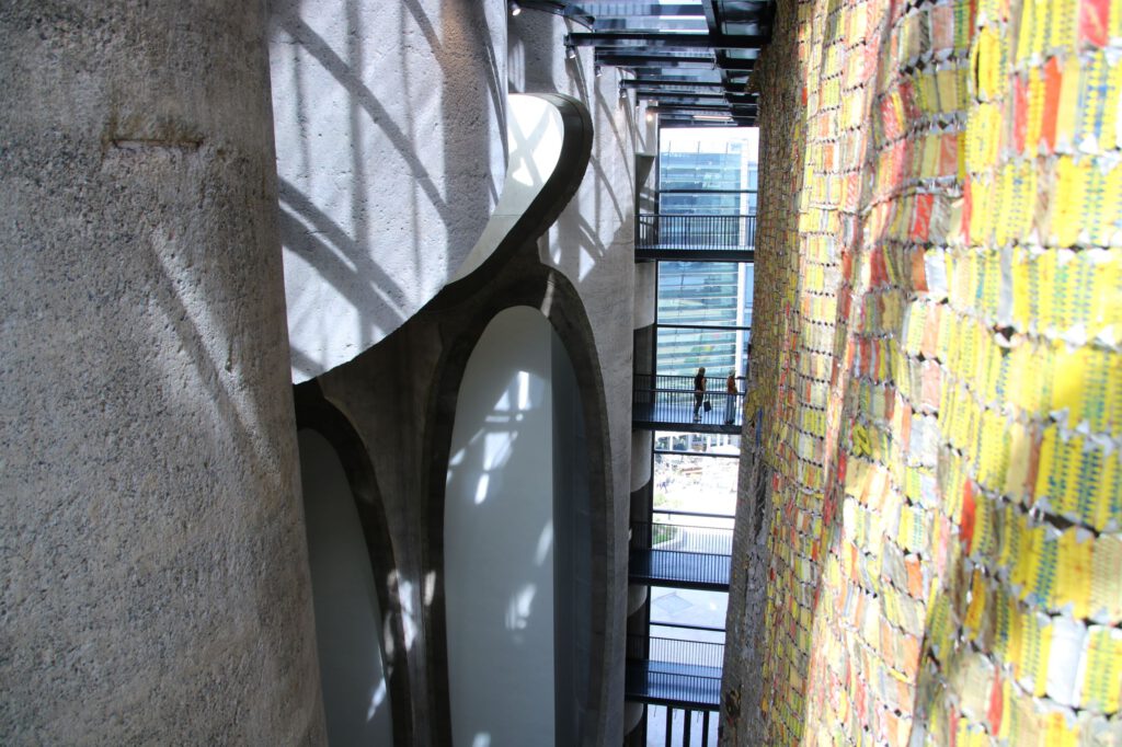 Wir schlafen aus, frühstücken und packen unser Reisegepäck flugtauglich und checken im Breaside B&B aus, lassen aber unser Gepäck noch dort stehen. Wir wollen uns heute das 2007 eröffnete Museum für zeitgenössische afrikanische Kunst anschauen (Zeitz Museum of Contemporary Art Africa). Alleine schon wegen seiner bemerkenswerten Architektur reizt uns dieser Museumsbesuch. Das Gebäude des MOCAA entstand durch die Restaurierung bzw. den Umbau einer ehemaligen Getreidesilo-Anlage. Besoders bemerkenswert ist das riesige Atrium, das aus einem Bündel von 42 eng beieinanderstehenden Betonzylindern von jeweils 30 m Höhe herausgesägt wurde. Dadurch entstanden interessante geometrische Strukturen. Von außen ist das Getreidesilo weitgehend in seiner ursprünglichen Form von 1921 erhalten worden.
