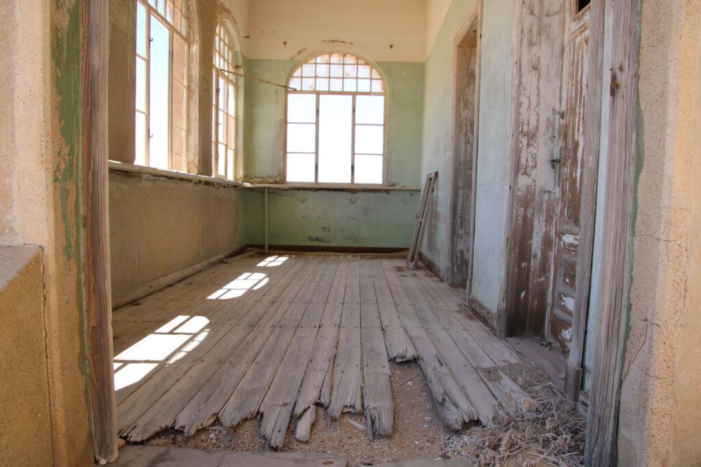 Heute zeugen davon noch die Häuser der leitenden Angestellten, Einrichtungen wie eine doppelte Scherenkegelbahn, eine Eisfabrik und ein großes Krankenhaus. Allerdings sind die Häuser, die schon vor mehr als einem halben Jahrhundert verlassen wurden, heute teilweise verfallen und vom Wüstensand zurückerobert worden. Das liefert außergewöhnliche Eindrücke und natürlich auch Fotomotive. Wir finden, Kolmannskuppe ist ein spannender „lost place“. Wer sich mehr für die Geschichte des Ortes und für die Diamanten interessiert, findet hier >> weitere Infos >> .
