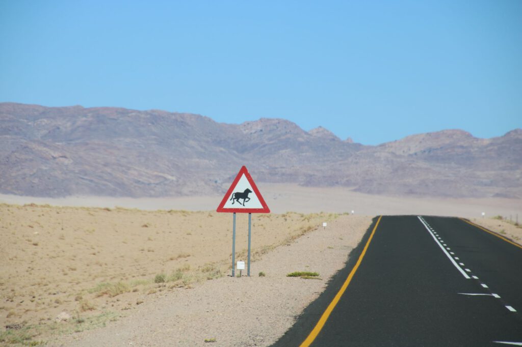 Bei Garub – das liegt ca. 20 km westlich von Aus – soll man die Wüsten-Wildpferde beobachten können. Es ist nicht zu 100% klar, woher die Pferde stammen, aber mir gefällt die Version am besten, dass es Nachkommen entlaufener Pferde der deutschen Schutztruppe sind. Als wir den Beobachtungsunterstand erreichen, sehen wir eine große weite Sandfläche, aber keine Pferde. Also fahren wir weiter in Richtung Lüderitz und werden es mit den Pferden noch mal auf der Rückfahrt versuchen.