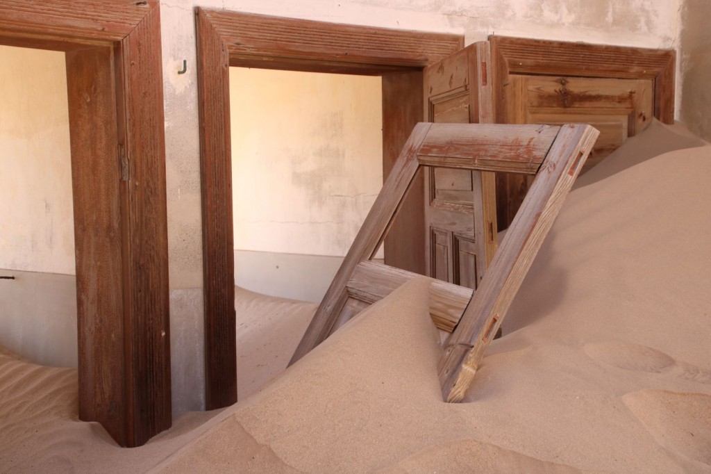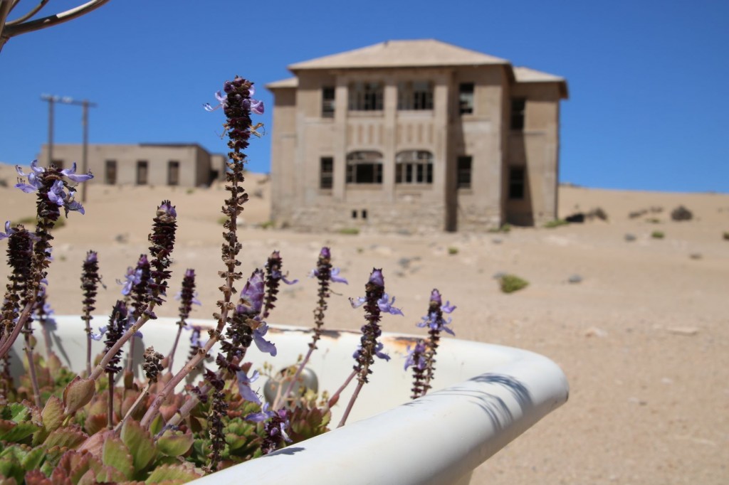Bei diesen Eindrücken geht die einstündige Fahrt zur Kolmannskuppe schnell vorüber. Kolmannskuppe ist eine Geisterstadt, die entstand, als hier vor gut 100 Jahren Diamanten gefunden wurden. Schnell wuchs mitten in der Wüste eine kleine Stadt heran, die zur damaligen Zeit als die „reichste Stadt der Welt“ bezeichnet wurde.