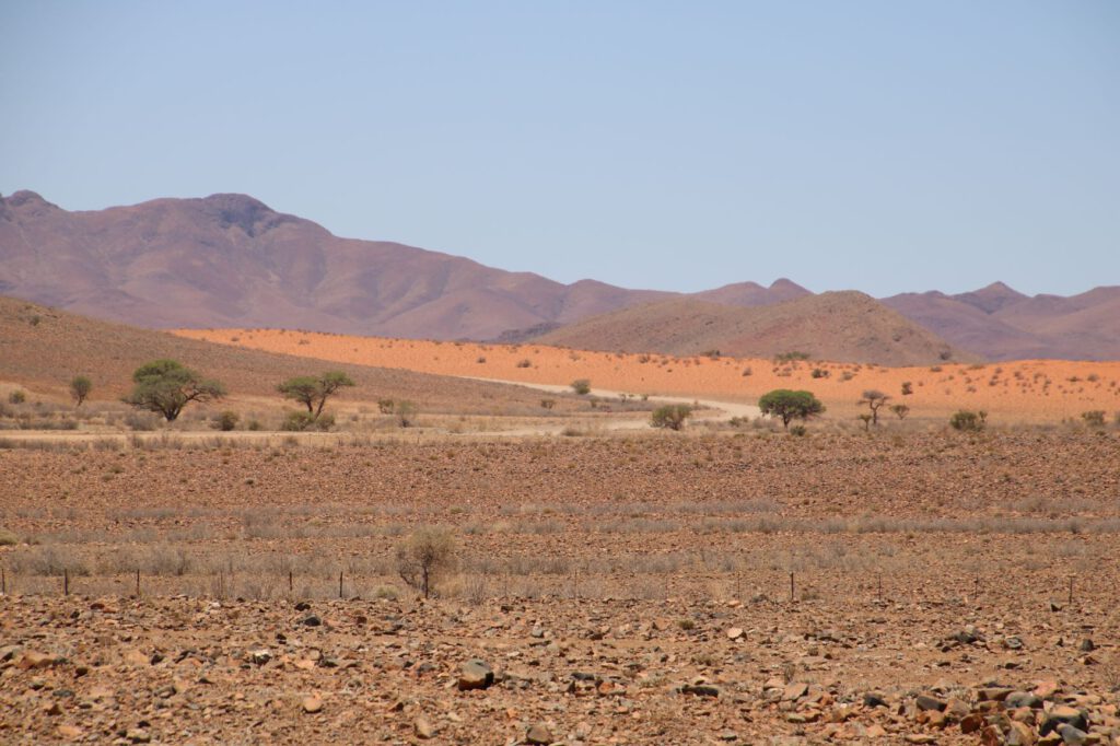 Nach 111 km auf der D 707 stoßen wir auf die C 27 und biegen bei Betta Richtung Sesriem ab. 40 km weiter in nordwestliche Richtung und wir stehen vor dem Tor zum Namib Rand Natur Reservat.
