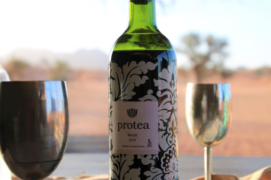 Den Rest des Tages verbringen wir auf unserer Aussichtsterrasse, genießen einen Cocktail (Basis Ginlikör der Destillery Kristall), zum Abendessen (Wurst vom Grill mit Kürbis und Nudeln) einen Protea Merlot und lassen die intensiven Farben der Namib auf uns wirken. So lässt sich’s aushalten.