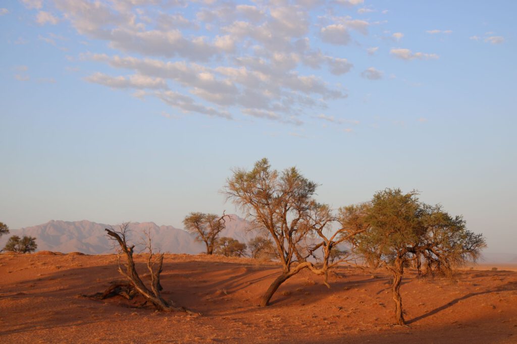 Wir rollen nun mit 40 km/h direkt auf die roten Dünen zu, die hier noch längst nicht die Höhe der berühmten Düne 45 bei Sesriem haben, aber allein durch ihre Farbe ein Hingucker ist. Nach weiteren 20 Kilometern haben wir gegen 15:00 Uhr unser Ziel erreicht, die Campsite „Jupiter“. Einer von leidglich drei weit auseinanderliegenden Stellplätzen in dieser Dünenlandschaft, mit jeweils eigenem Sanitär- und Küchenblock.