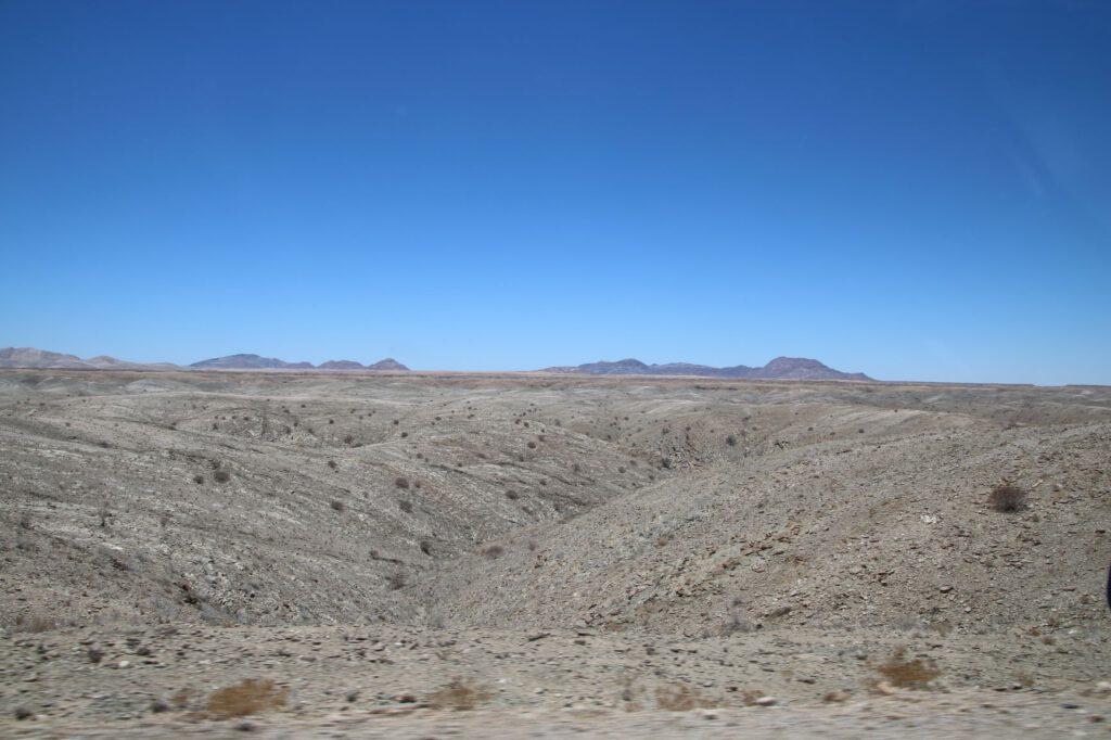 Bis hier hin ist das eine sehr abwechslungsreiche und landschaftlich attraktive Strecke. Anschließend führt die Straße jedoch durch die unendlich erscheinende Ebene der Zentral-Namib. Hier endet unsere Begeisterung für Wüstenlandschaften, denn dieser Abschnitt, der sich bis Walvisbay zieht, ist nicht nur öde und langweilig, sondern einfach eine wüste Wüste.