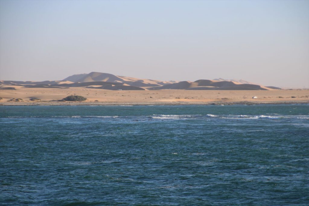 Walvisbay lassen wir links liegen und fahren weitere 30 Minuten auf einer bestens ausgebauten 4-spurigen Straße nach Swakopmund. Dort treffen wir gegen 14:00 Uhr beim „Crazy Gecko“ ein und Jacques, der Boss der Werkstatt, zeigt sich zuversichtlich, dass er die Probleme mit unserem Wagen morgen in den Griff bekommen wird, während wir einen Ausflug per Boot unternehmen, um Delfine zu beobachten. Diese Tour gilt es noch zu organisieren. Dafür hatte uns Andrew, unser Guide im Namib Rand, die Telefonnummer von Nick gegeben. Tatsächlich zeigt dieser sich bereit, die Tour und unsere Abholung an der Werkstatt zu organisieren. Nach einigen Telefonaten und WhatsApps steht die Tour.