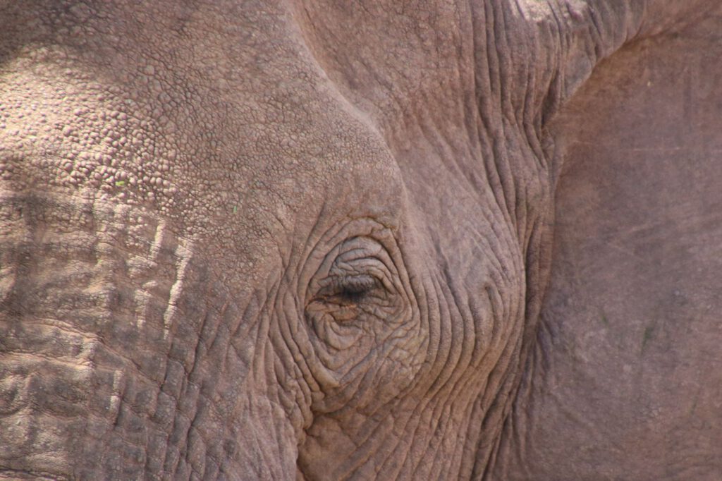 Wir freuen uns riesig über diesen Anblick und wissen, dass es nicht selbstverständlich ist, diese speziellen Elefanten überhaupt zu Gesicht zu bekommen. Calvin fährt immer wieder neue Positionen an, damit wir die verstreuten Gruppenmitglieder aus verschiedenen Winkeln gut sehen können. Zeitweise nähern wir uns ihnen bis auf wenige Meter. Obwohl es wilde Tiere sind, kennen sie die Safari-Fahrzeuge und die sanftmütigen Riesen haben kein Problem mit den Menschen.