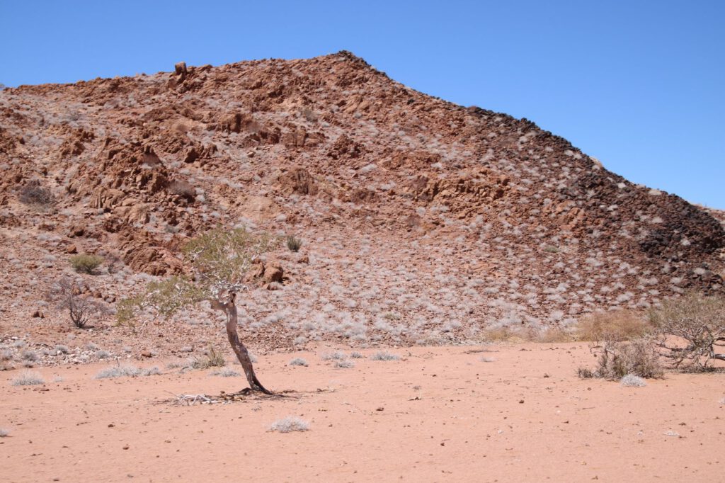 Ein neuer Tag bricht an in Namibia. Wir sind ausgeschlafen, wenngleich keiner von uns beiden wirklich gut durchgeschlafen hat. Sind wir schon so sehr an das Schlafen im Bushcamper gewöhnt? In der Nacht wird es auch hier am Brandberg recht kühl, aber schon zum Frühstück um 7:30 Uhr herrschen angenehme 22 Grad. Auch heute Morgen haben wir die große Terrasse ganz für uns allein, denn (leider) sind wir wieder die einzigen Frühstücksgäste.