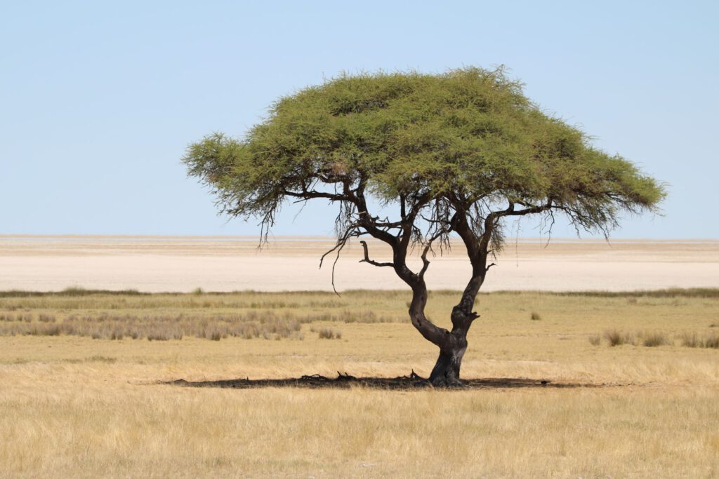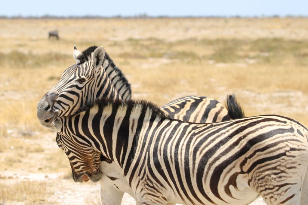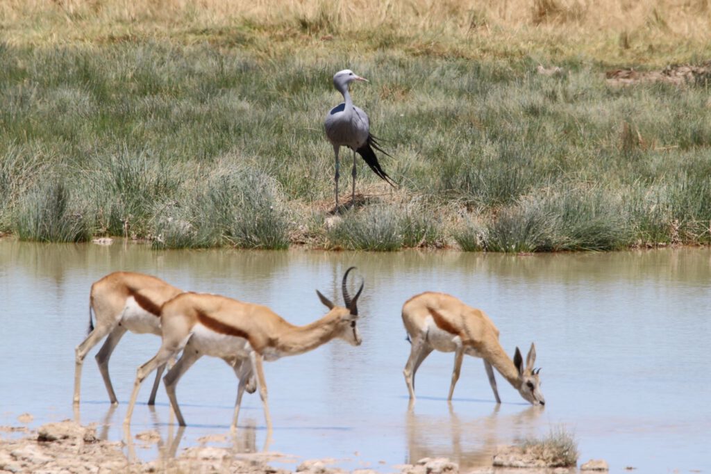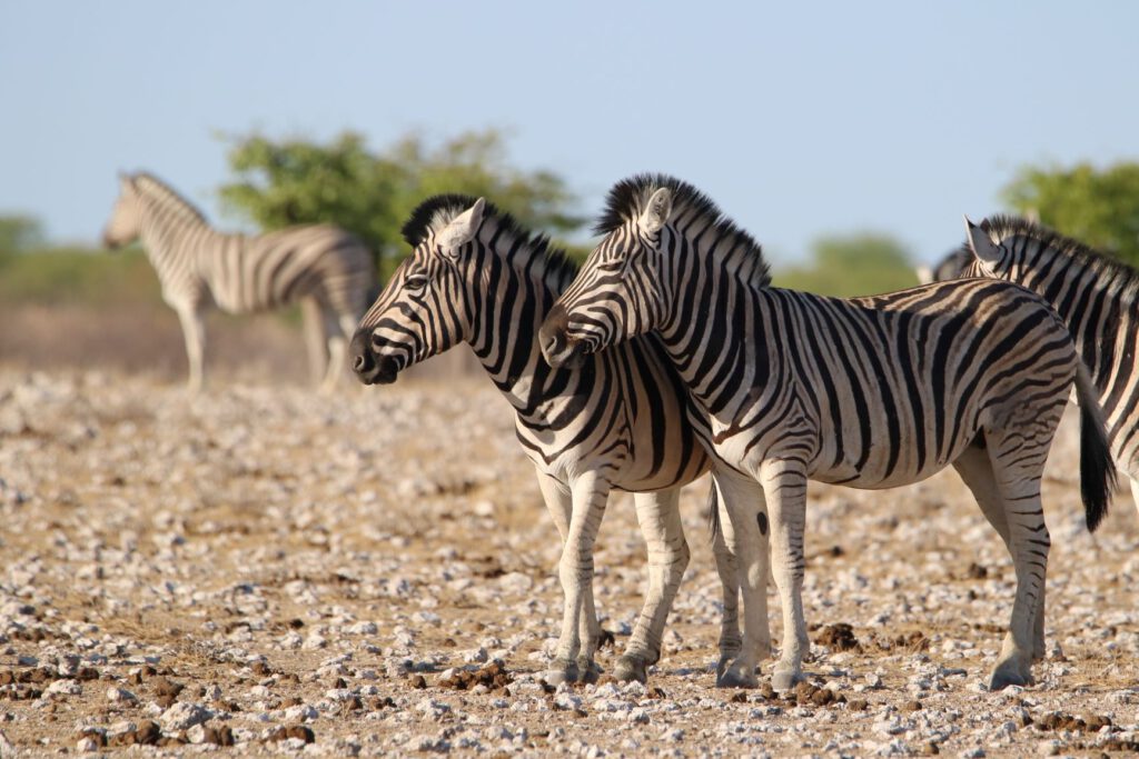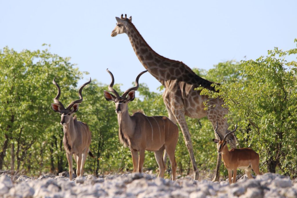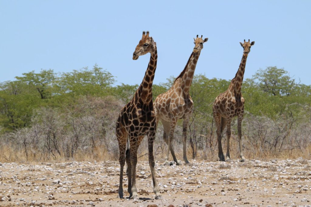 Halali, diesen ungewöhnlichen Namen trägt unser heutiges Ziel im Etosha Nationalpark. Wir wollen die kühleren Morgenstunden optimal nutzen. Daher stehen wir bereits um 5:45 Uhr auf und verzichten aufs Frühstück. Stattdessen packen wir alles Notwendige ein, damit wir an einem Wasserloch beim Warten auf Tiere oder deren Beobachtung frühstücken können. So verlassen wir bereits um 6:40 Uhr das Camp.