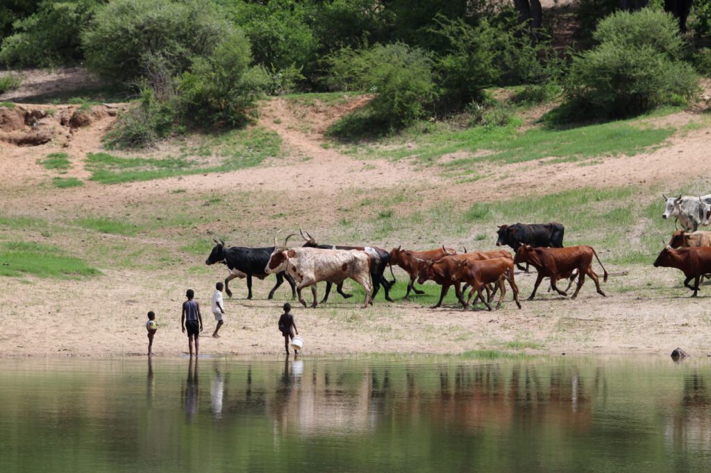 Die drei Stunden Fahrt geradeaus auf der B 8 Richtung Osten vergehen wie im Flug. Die Eindrücke rechts und links der Straße sind die gleichen wie am Vortag: immer wieder „kraal-artige“ Siedlungen, Kühe, Esel und Ziegen auf und neben der Straße. Man muss jederzeit bremsbereit sein.