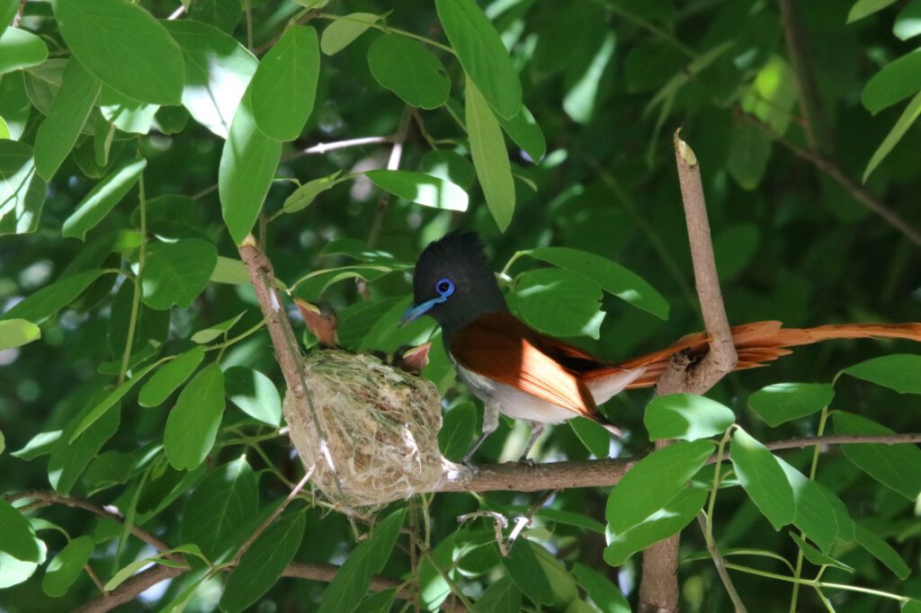 Ab Mittag ist Relaxen angesagt, sprich: wir legen uns an den kleinen aber feinen Pool, lesen, dösen und Andrea geht auf Fotosafari (vor allem wegen der farbenprächtigen Paradiesschnäpper, die ein Nest in einem nahegelegenen Baum haben).