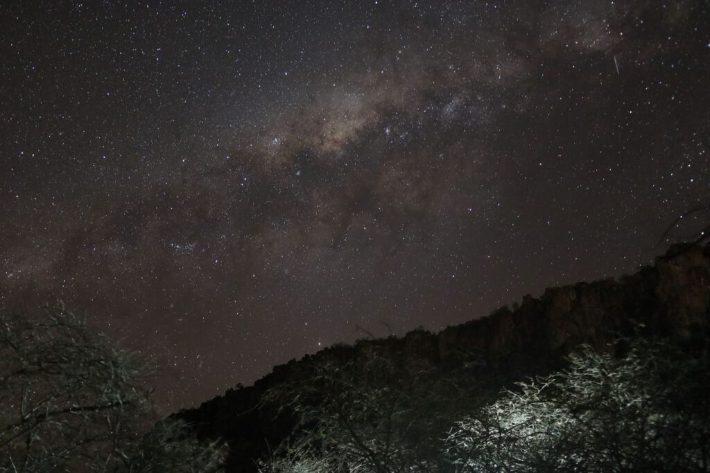 Während Andrea gerade ein paar Fotos von der Milchstraße macht, schreibe ich den heutigen Bericht und anschließend werden wir bald unter das Moskitonetz in unser Bett steigen, denn morgen wartet eine lange Fahrt zu Ansie und Hannes ins Mukuku Restcamp. Wir freuen uns schon auf zwei relaxte Tage am Okavango.