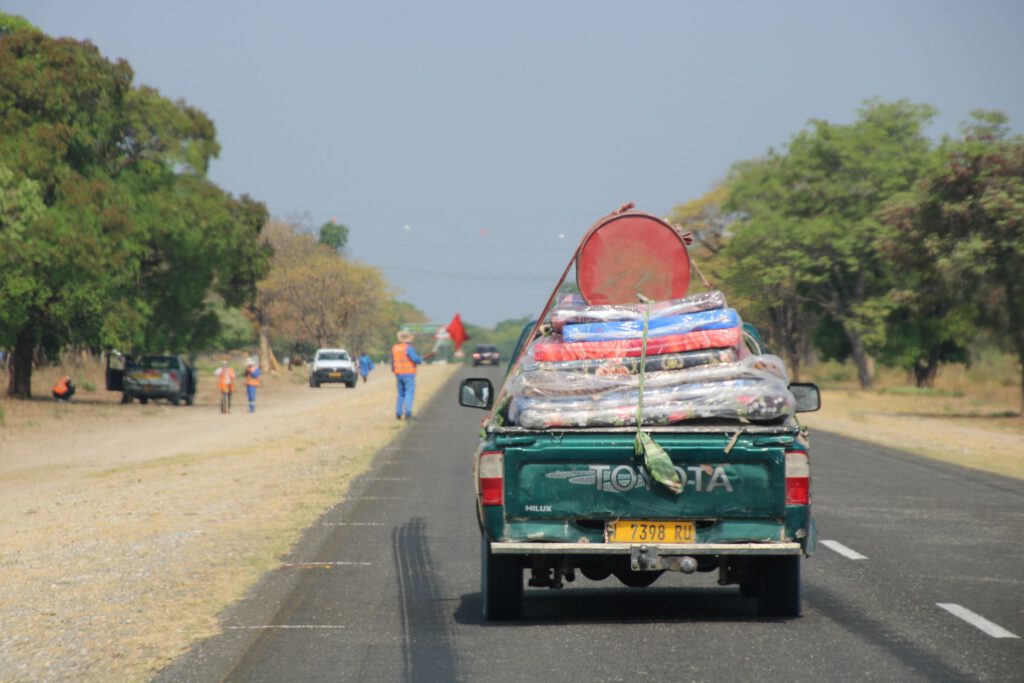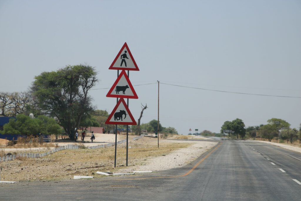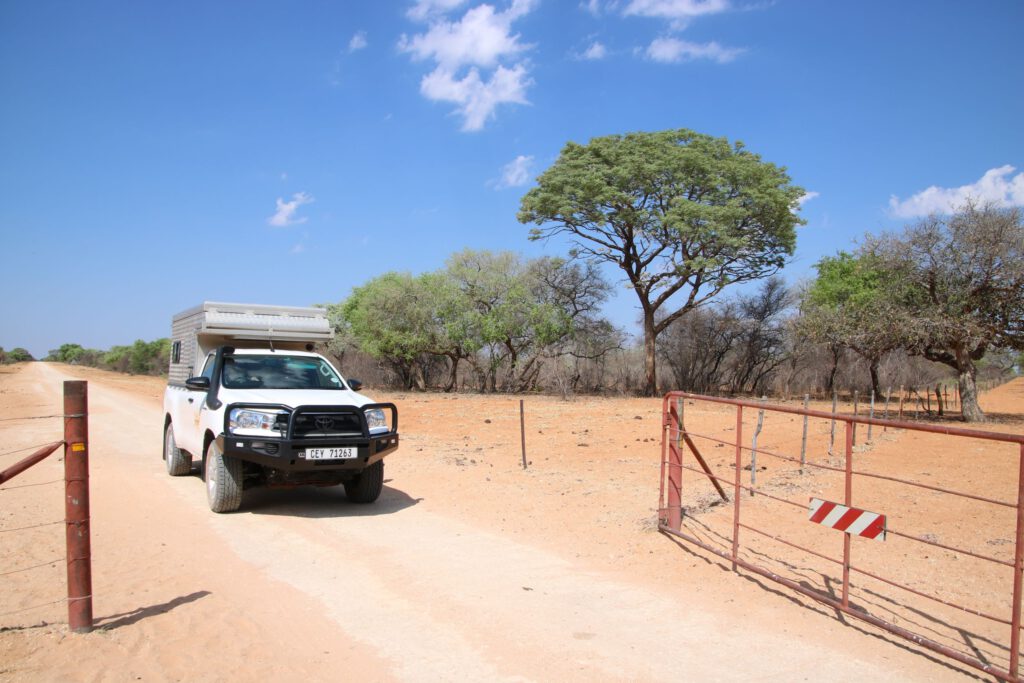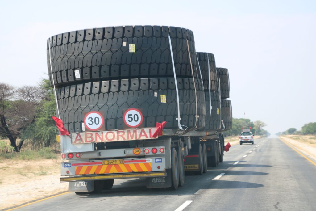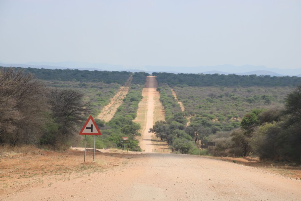 In Grootfontein wird kurz der Reifendruck geprüft und wir kaufen noch ein paar Dinge ein, die wir gestern vergessen bzw. nicht bekommen hatten. Und dann liegt wohl der langweiligste Streckenabschnitt des gesamten Urlaubs vor uns. 400 km schnurstracks geradeaus, durch quasi immer die gleiche Landschaft: Buschwerk und am Straßenrand wunderschöne hohe Bäume verschiedenster Art. Das einzig Aufregende sind insgesamt vier Schwertransporte, die überdimensionale Reifen geladen haben und mit 50 Sachen vor uns her bummeln.