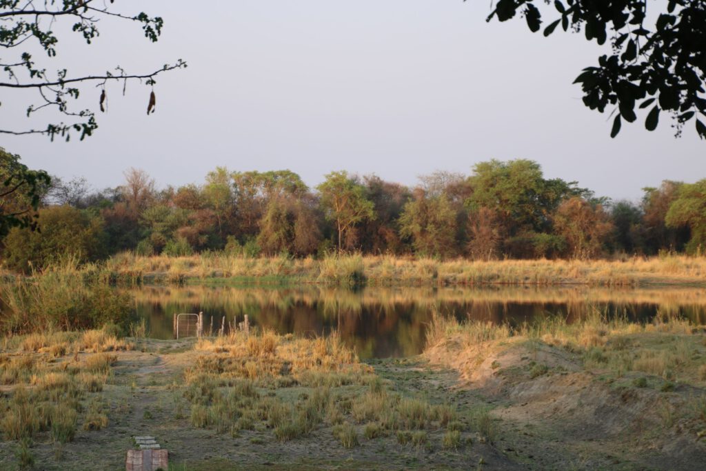 Hannes begrüßt uns erfreut, scheint aber ziemlich erstaunt, uns zu sehen. Schnell stellt sich heraus, dass Ansie unsere Reservierung „verbosselt“ hat. Die beiden bedauern dies sehr, haben aber zum Glück noch eine Campsite mit eigenem Sanitärbereich frei. Das Gelände liegt zwar am weniger idyllischen Ende dieser kleinen Oase und ist somit kein Augenschmaus, aber dafür ist die Sanitäranlage vom feinsten. Wir schnappen unsere Badesachen und verbringen den Rest des Nachmittags am Pool, lesen und beobachten die immens abwechslungsreiche Vogelwelt. Leider kann uns Hannes auch keine abendliche Bootstour auf dem Cubango anbieten, denn der Wasserstand ist viel zu niedrig. Daher beschließen wir, gleich am nächsten Tag weiterzufahren. Abends während dem Essenkochen, unterhalten wir uns mit Hannes über die „Baustelle“ (zukünftiges Farmland) und die zu befürchtenden negativen Auswirkungen für die Einheimischen. Wir wollen gar nicht wissen, wie es hier in einem Jahr aussieht!