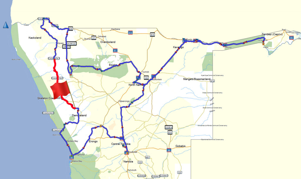 An der gesamten Strecke haben wir kein Wild gesehen. Das Kaokoveld und das Damaraland leiden seit vielen Jahren unter einer sehr schlimmen Trockenheit. Schon in den 1980er Jahren sind 80% des Wilds im Kaokoveld verdurstet. In beiden Regionen hat die spärliche Landbevölkerung so schwer unter der Dürre zu leiden, dass zu befürchten ist, dass sie in den nächsten Jahren abwandern muss. Die Flucht in die Städte wird ihr Leid vermutlich nicht lindern.